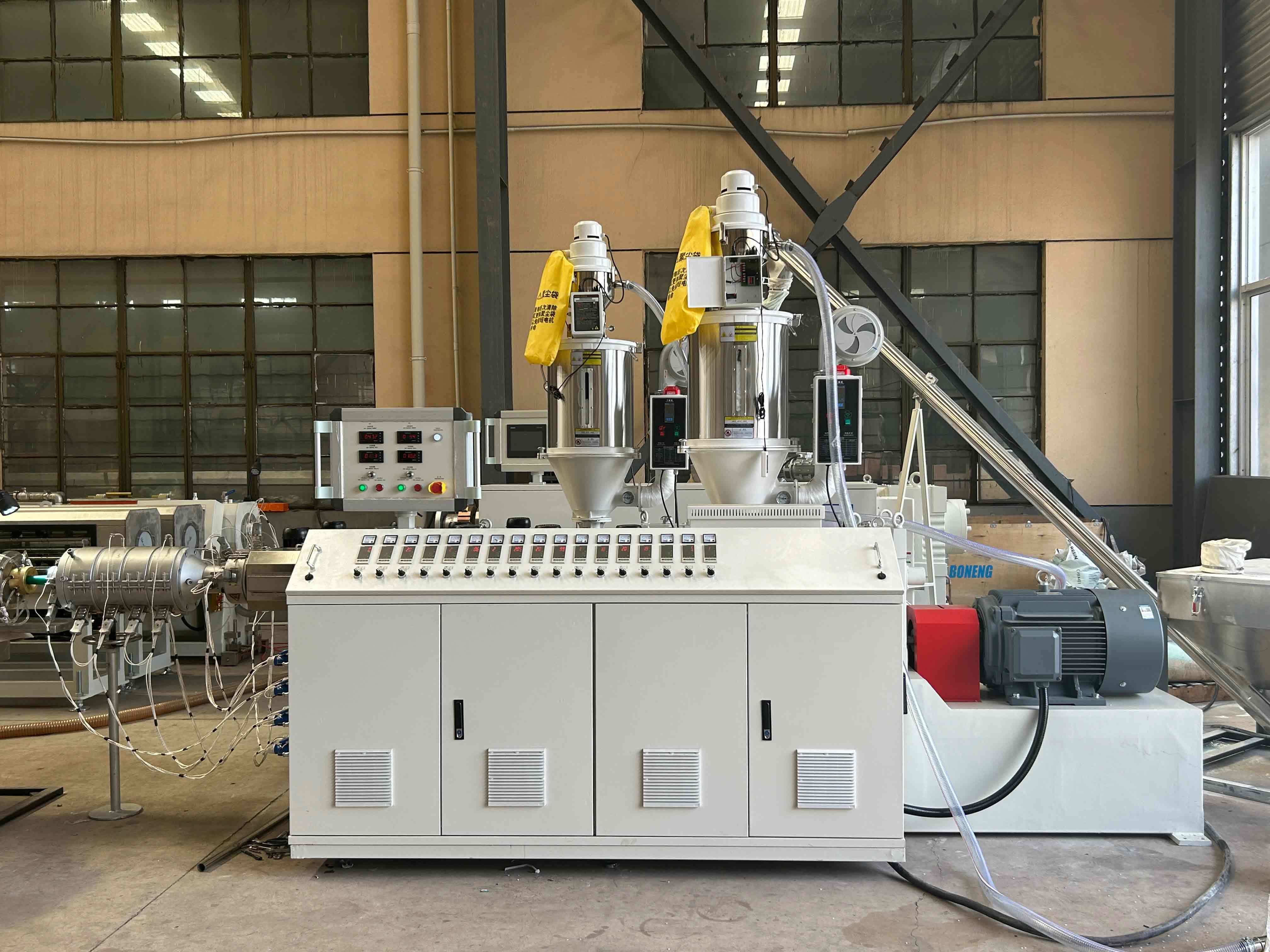 Ideal untuk produsen pipa, pemasok pertanian, dan industri konstruksi, mesin ekstrusi ini memberikan solusi yang andal untuk produksi pipa plastik dengan permintaan tinggi.