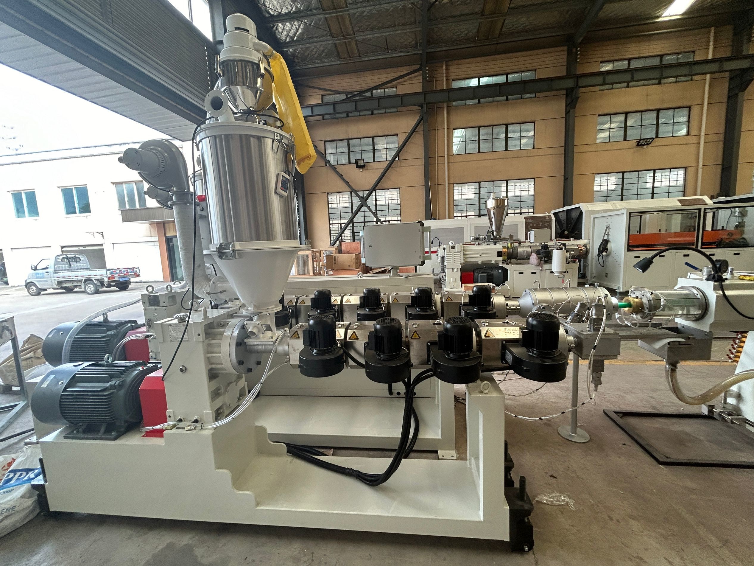 Bahan baku (pelet PPR/PVC, aditif) secara otomatis dimasukkan ke dalam hopper dan dicampur secara merata.
