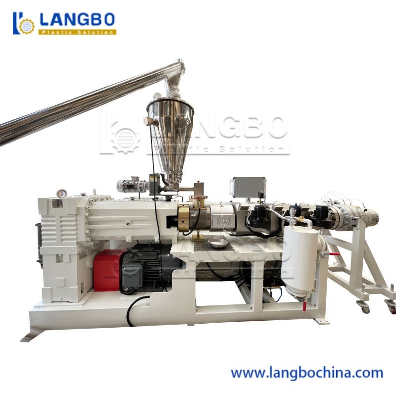 Ekstruder Sekrup Kembar:Diproduksi dengan komponen merek premium untuk stabilitas produksi, efisiensi, dan ketahanan mesin. Desain sekrup kembar berbentuk kerucut mengoptimalkan pemrosesan bahan mentah dengan pencampuran homogen, plastifikasi unggul, dan peningkatan efisiensi pengangkutan.
