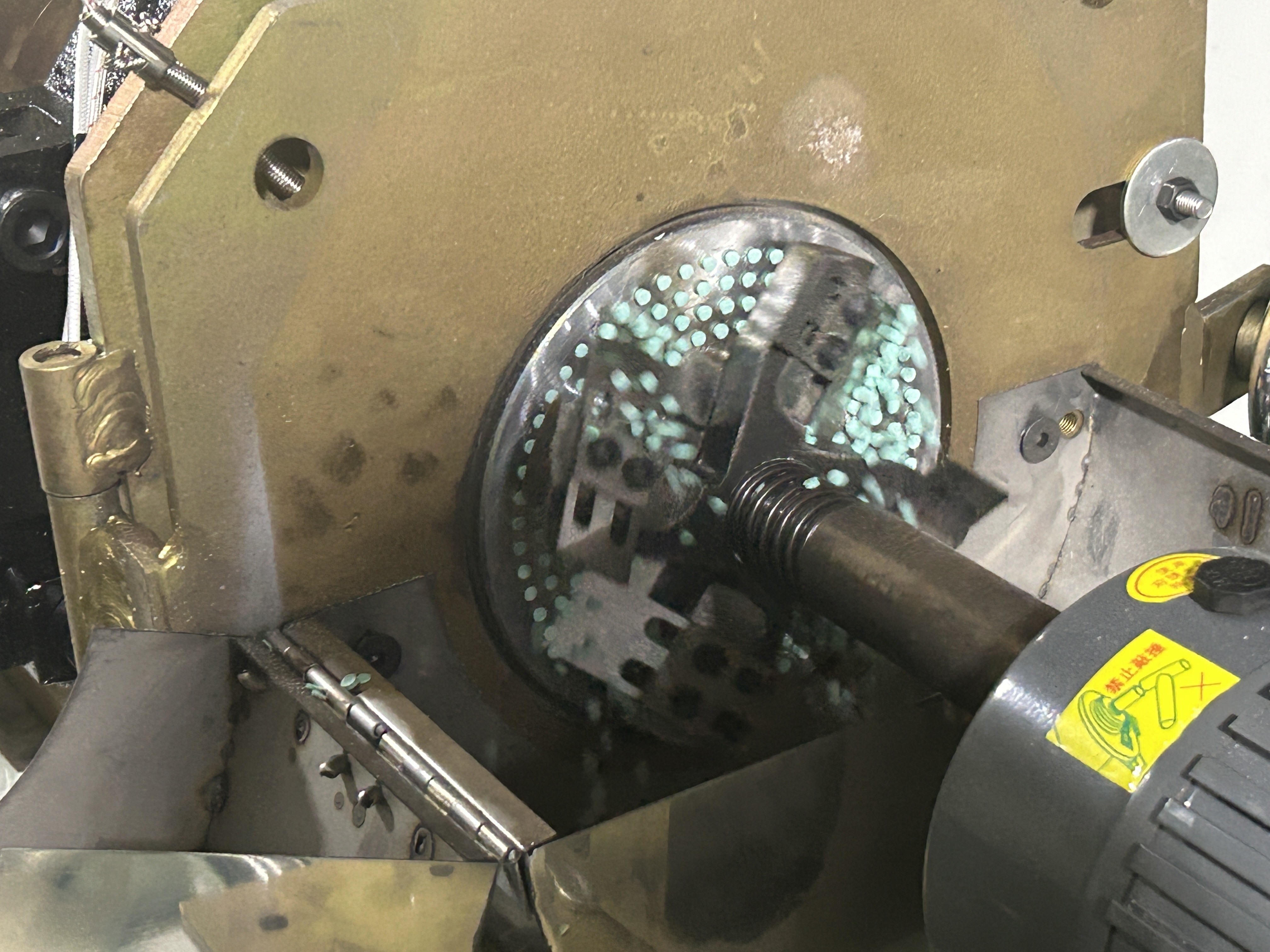 3, Pelletizing gaya: Hot-cutting pada wajah cetakan, bahkan memotong memastikan bentuk yang baik.