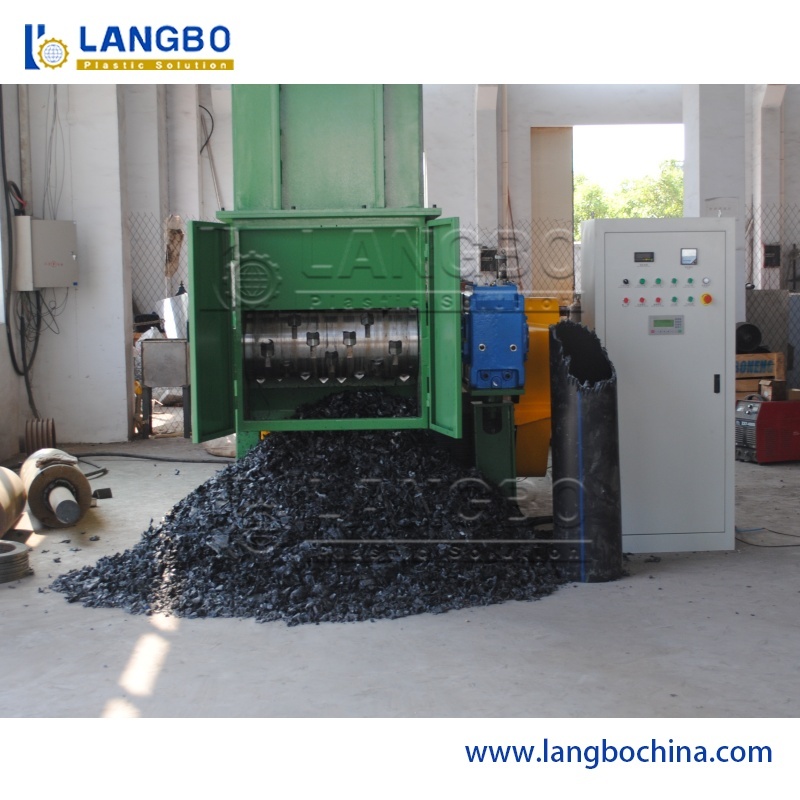 Before the HDPE pipe extrusion line runs smoothly to extrude pipes, workers need to start the machine and adjust every details during the whole process. In this process, there will produce many wasted pe melt lumps. It is big blocks and hard enough. Therefore it can't be dealt with crusher, it just can be processed by shredder. Our single shaft shredder has high rotation speed and shape knifives. Workers put the wasted melt lumps through the port and particles will be fall from the outlet.