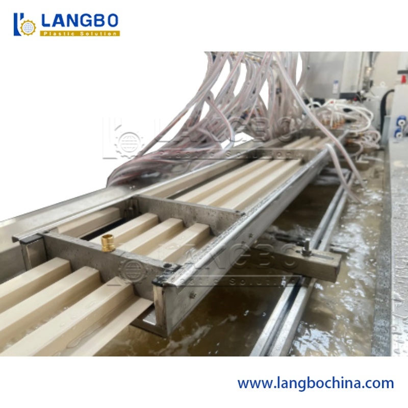 Constructed with stable steel framework and SUS 304 stainless steel body. Multi-dimensional position adjustment system combined with strategically placed water pumps and vacuum calibrators enables rapid shaping and cooling of PVC profiles. Extended calibration length ensures optimal product formation.